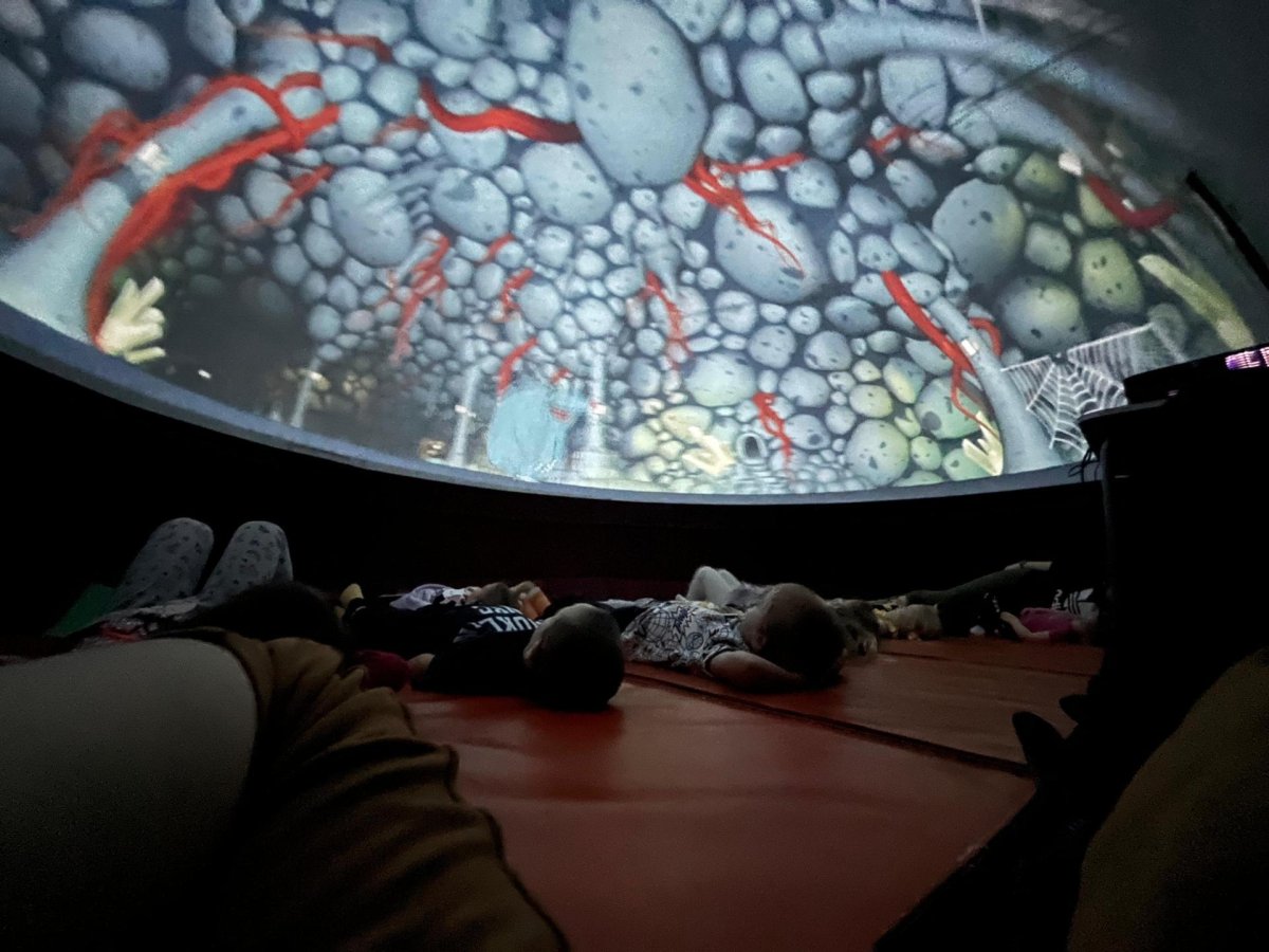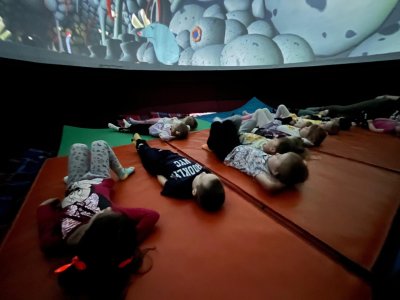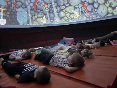 v pátek 13 3. 2026 jsme si užili dopoledne v kopuli mobilního planetária. Společnost nám dělal krtek a provázel nás nejen vesmírnou oblohou...