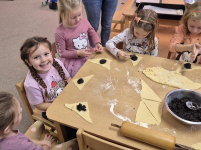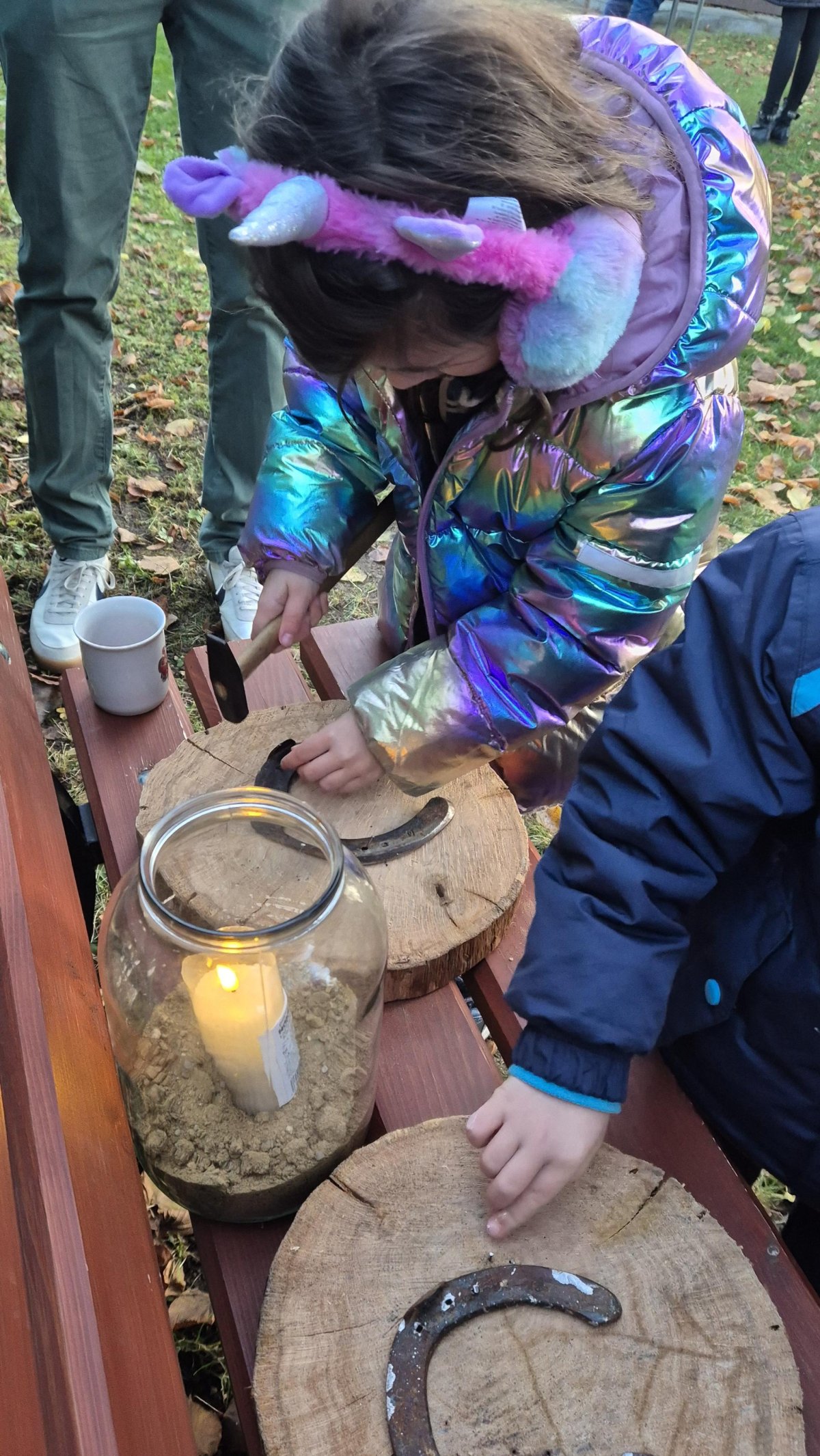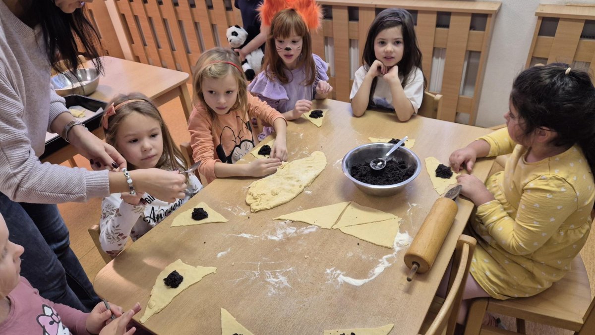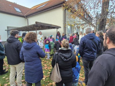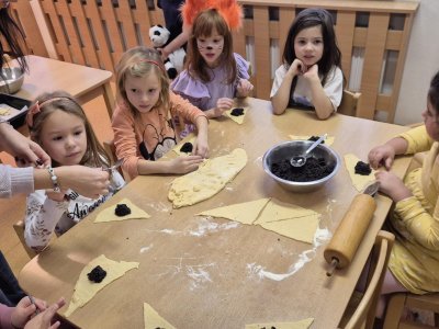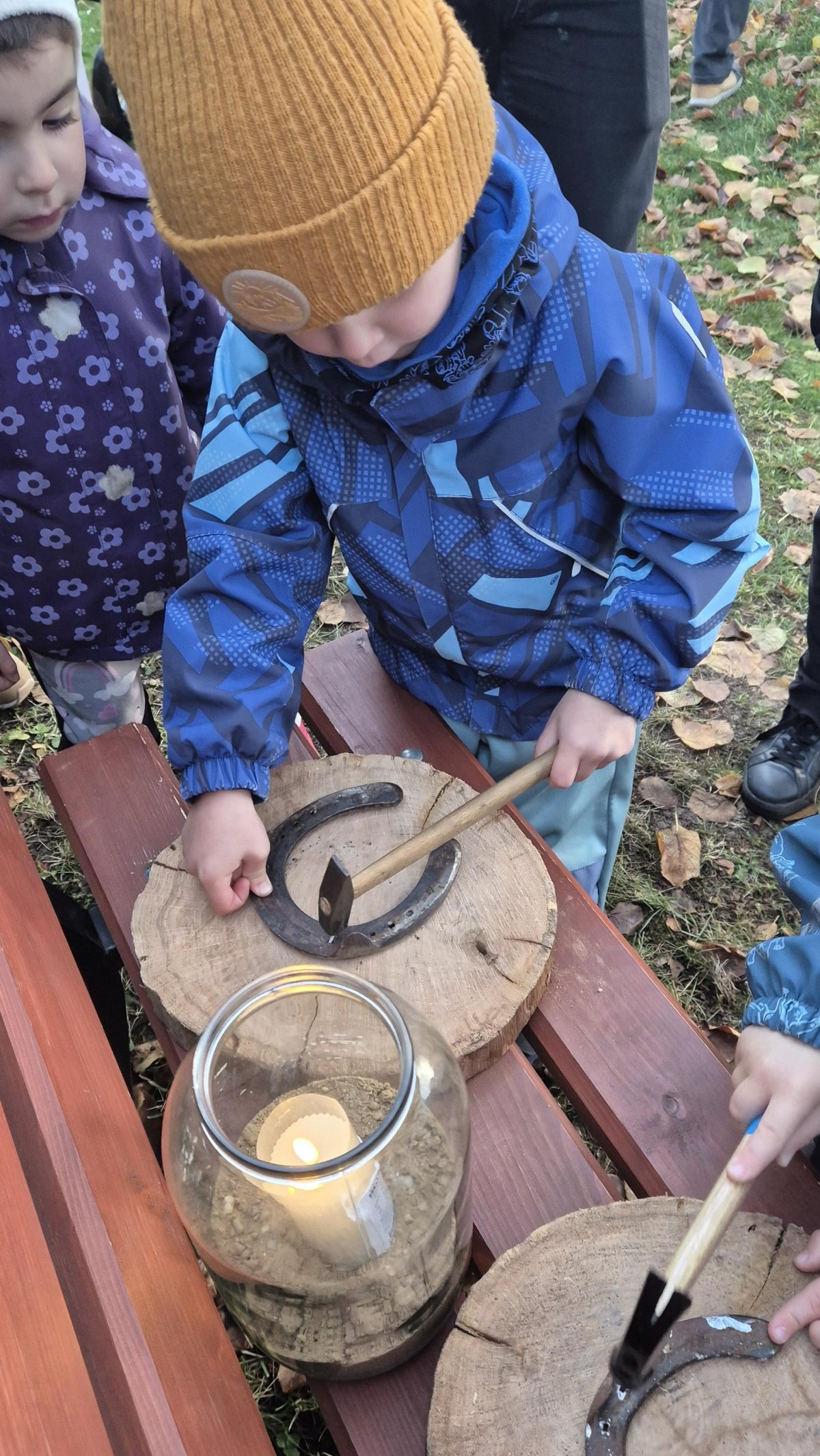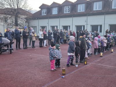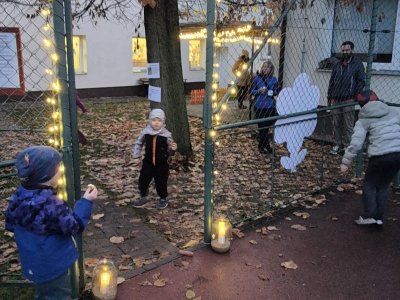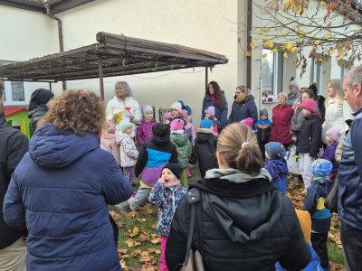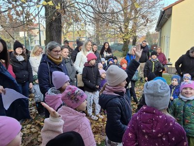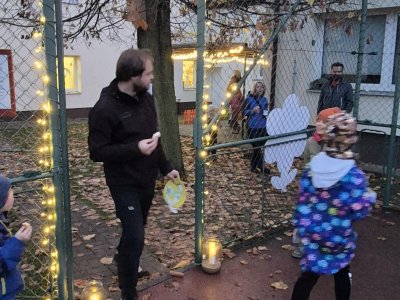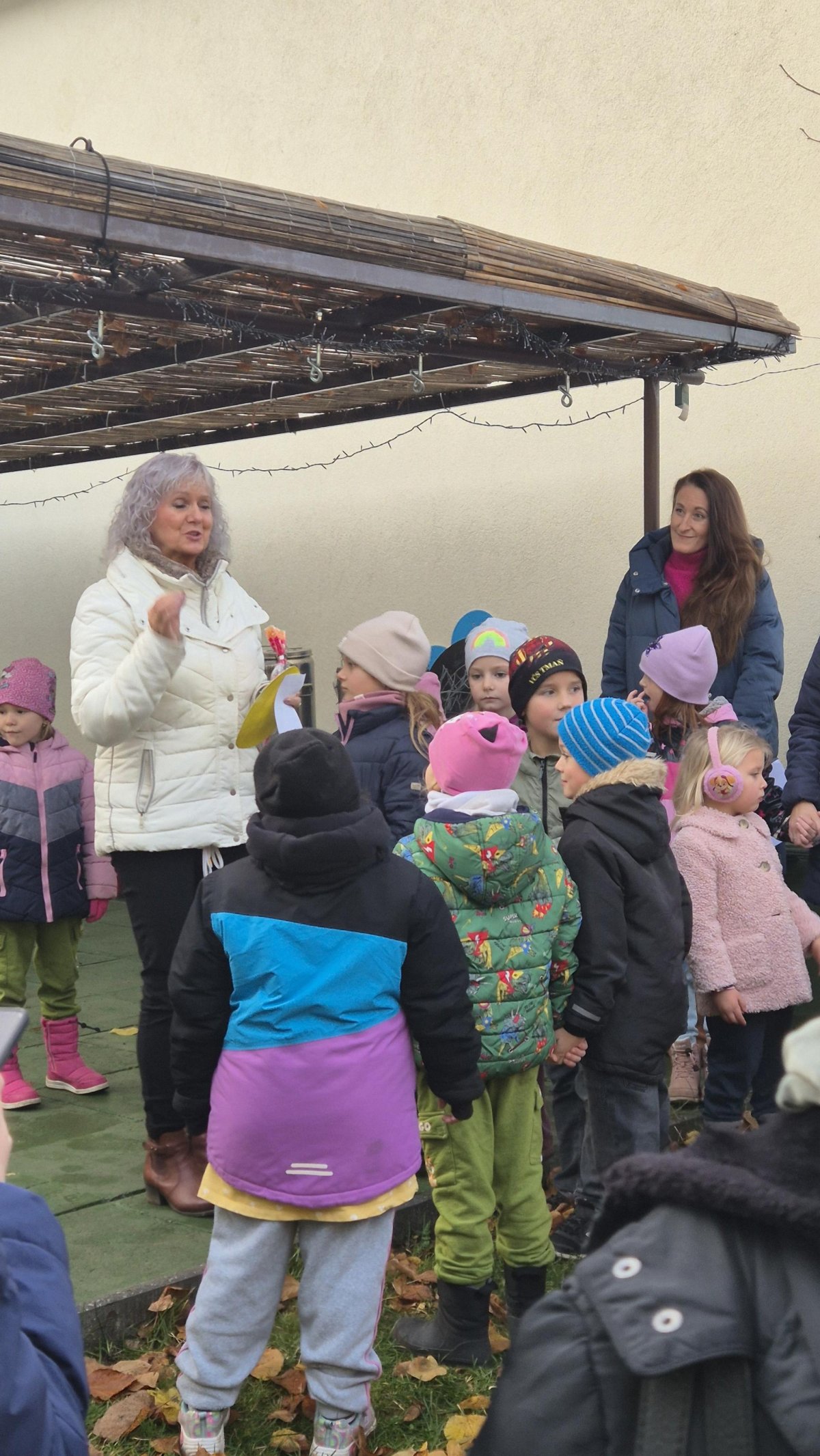 11. 11. 2025 jsme společně s dětmi i rodiči v pozdních odpoledních hodinách oslavili svátek Svatého Martina, nejprve pečením svatomartinských rohlíčků, přípravami na svatomartinskou stezku, plněním úkolů, ale i zpěvem písně o Svatém Martinovi. Nakonec svatý Martin přijel na svém koni a obdaroval chudáka kusem svého pláště.