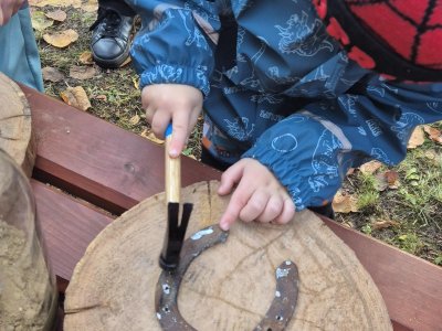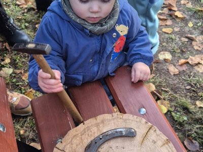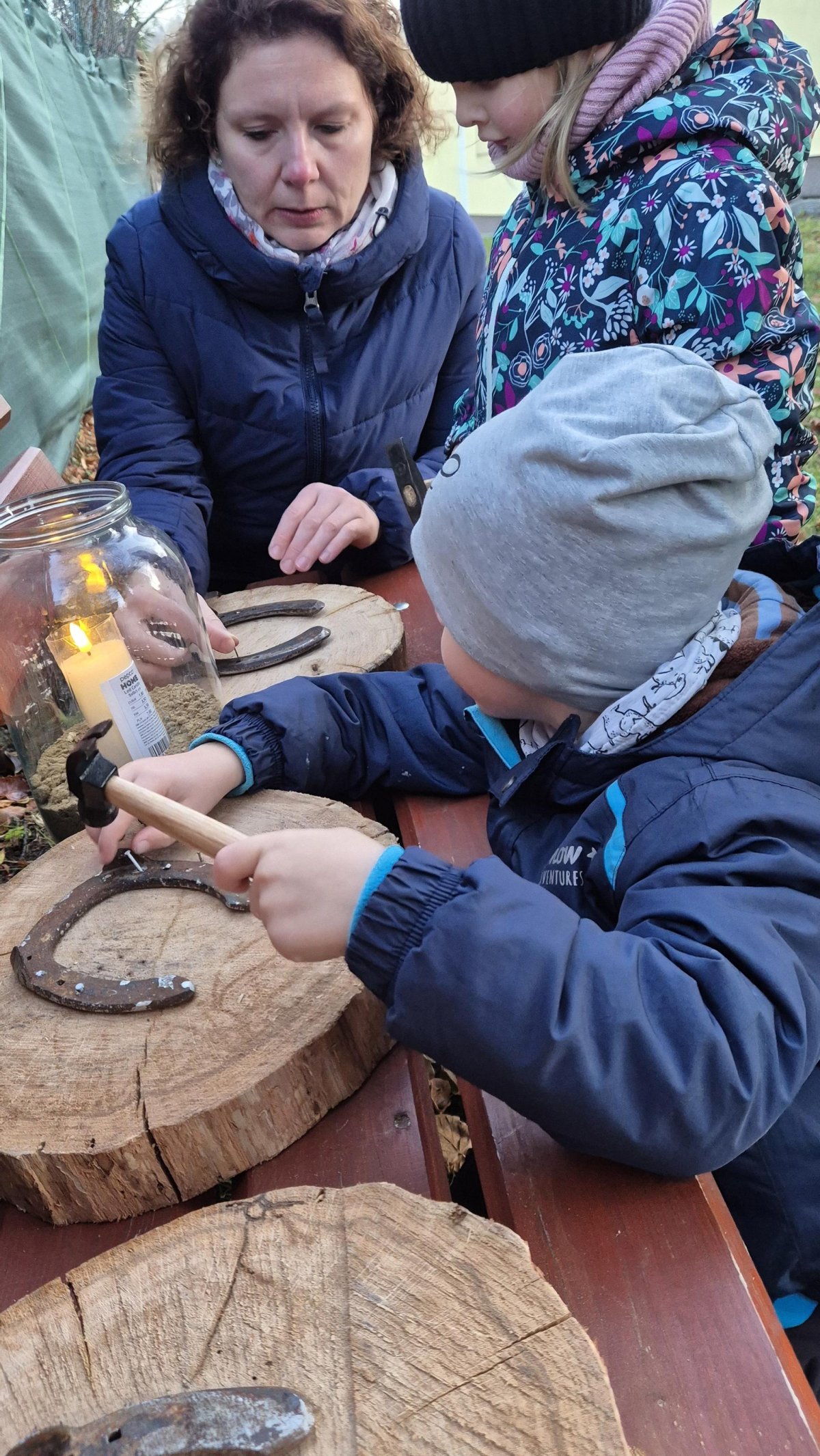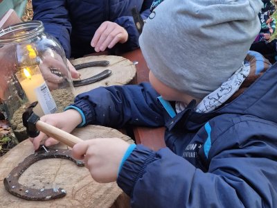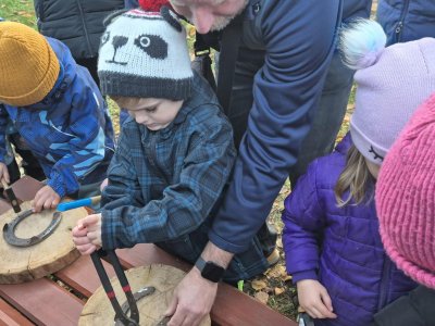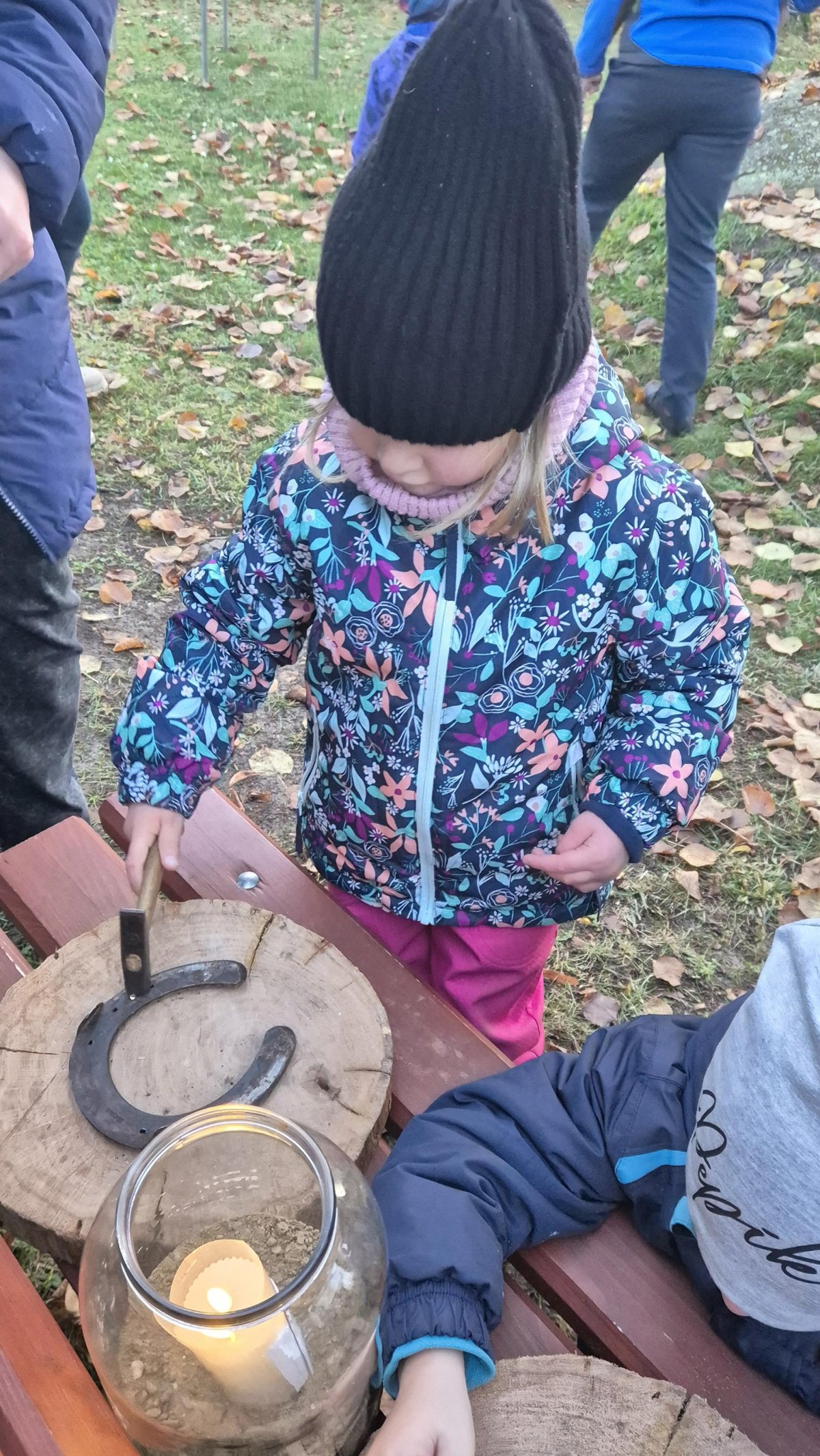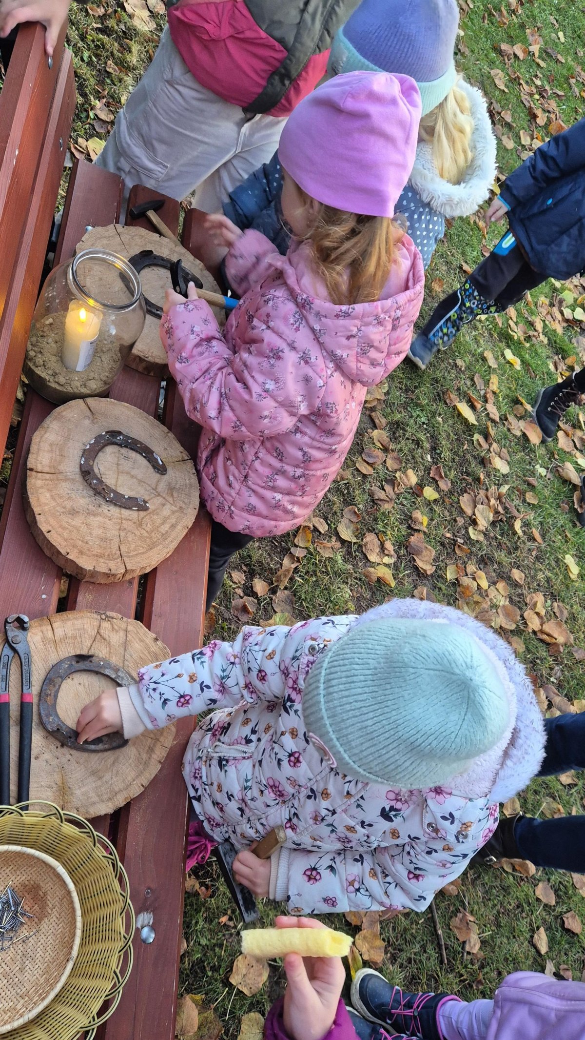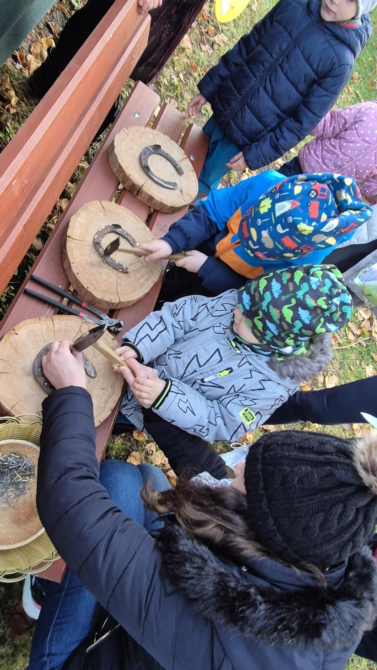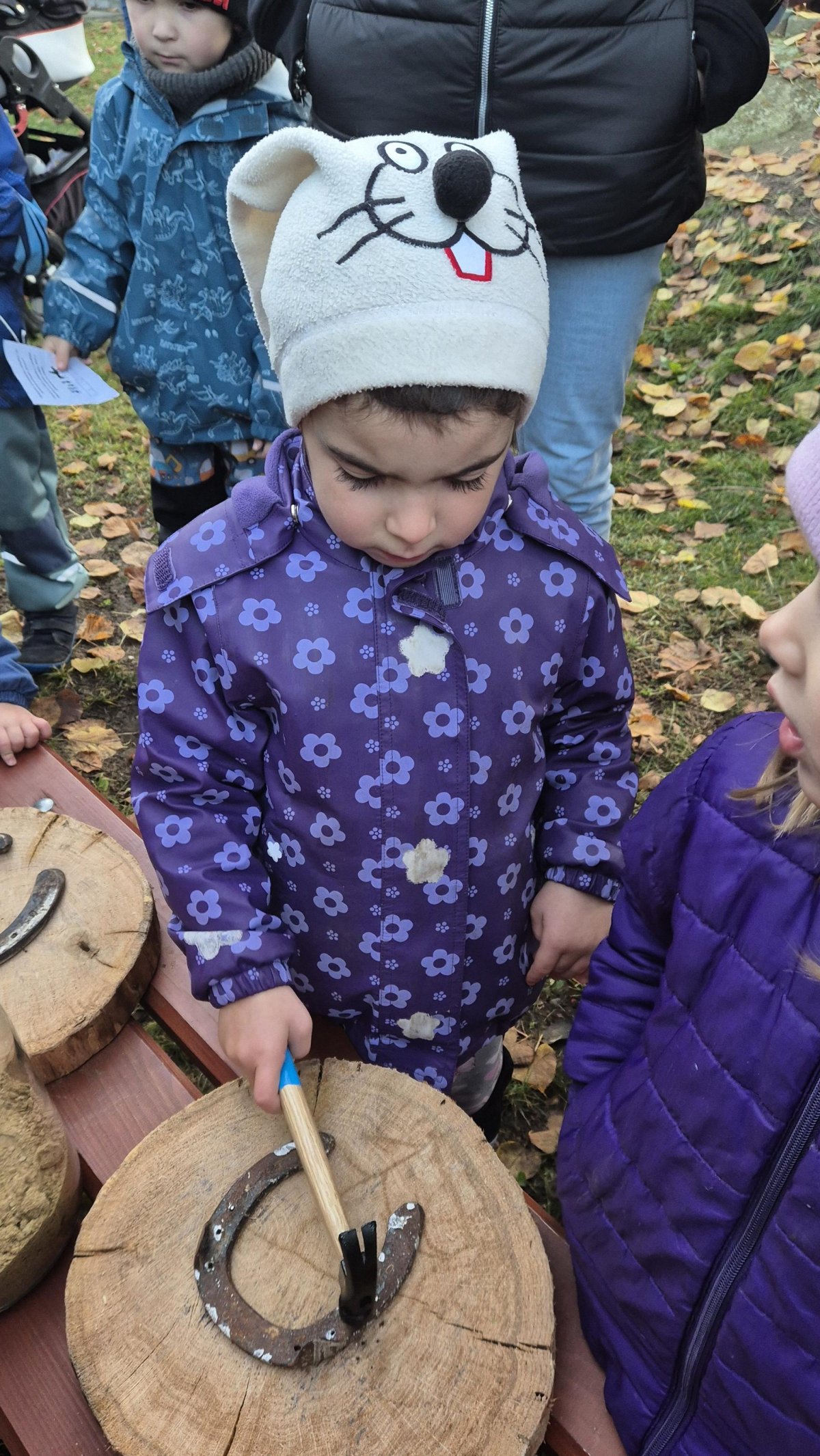 11. 11. 2025 jsme společně s dětmi i rodiči v pozdních odpoledních hodinách oslavili svátek Svatého Martina, nejprve pečením svatomartinských rohlíčků, přípravami na svatomartinskou stezku, plněním úkolů, ale i zpěvem písně o Svatém Martinovi. Nakonec svatý Martin přijel na svém koni a obdaroval chudáka kusem svého pláště.