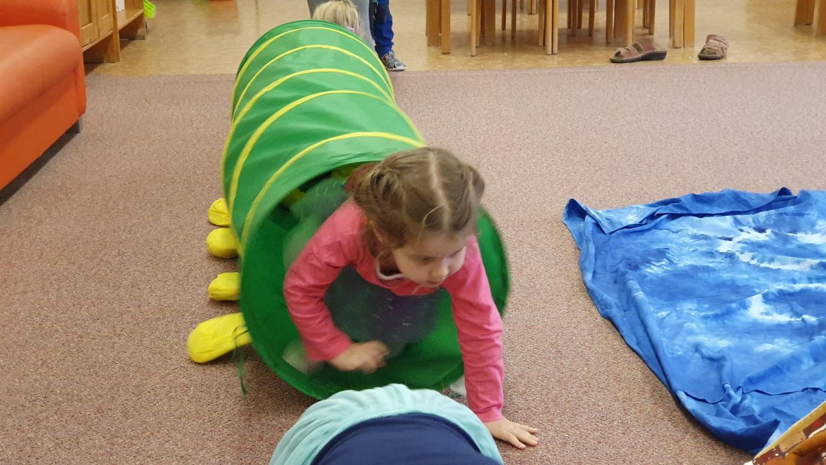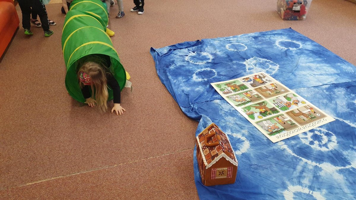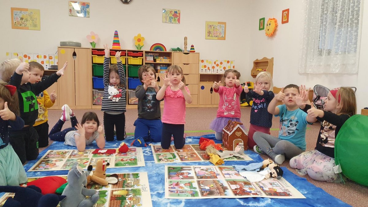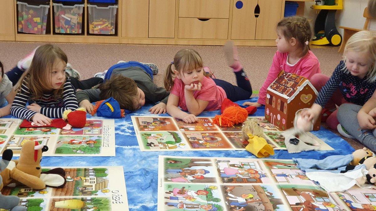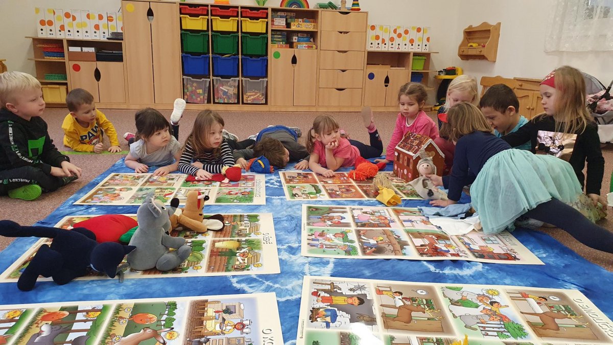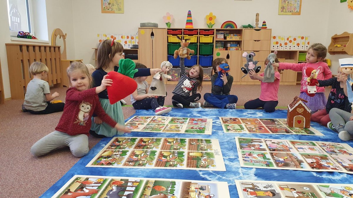 Celý týden se věnujeme pohádkám a pohádkovým bytostem. Prolezli jsme kouzelným tunelem do pohádkové říše. Zkoušíme poznat večerníčky podle znělky, hledáme pohádkové dvojice, přiřazujeme postavy k pohádkam, pohádkové obrázky řadíme podle dějové posloupnosti, zpíváme písničky z pohádek, opravujeme kašpárka, který plete pohádky, sami pohádky i hrajeme. Moc se nám to líbí a užívame si to.