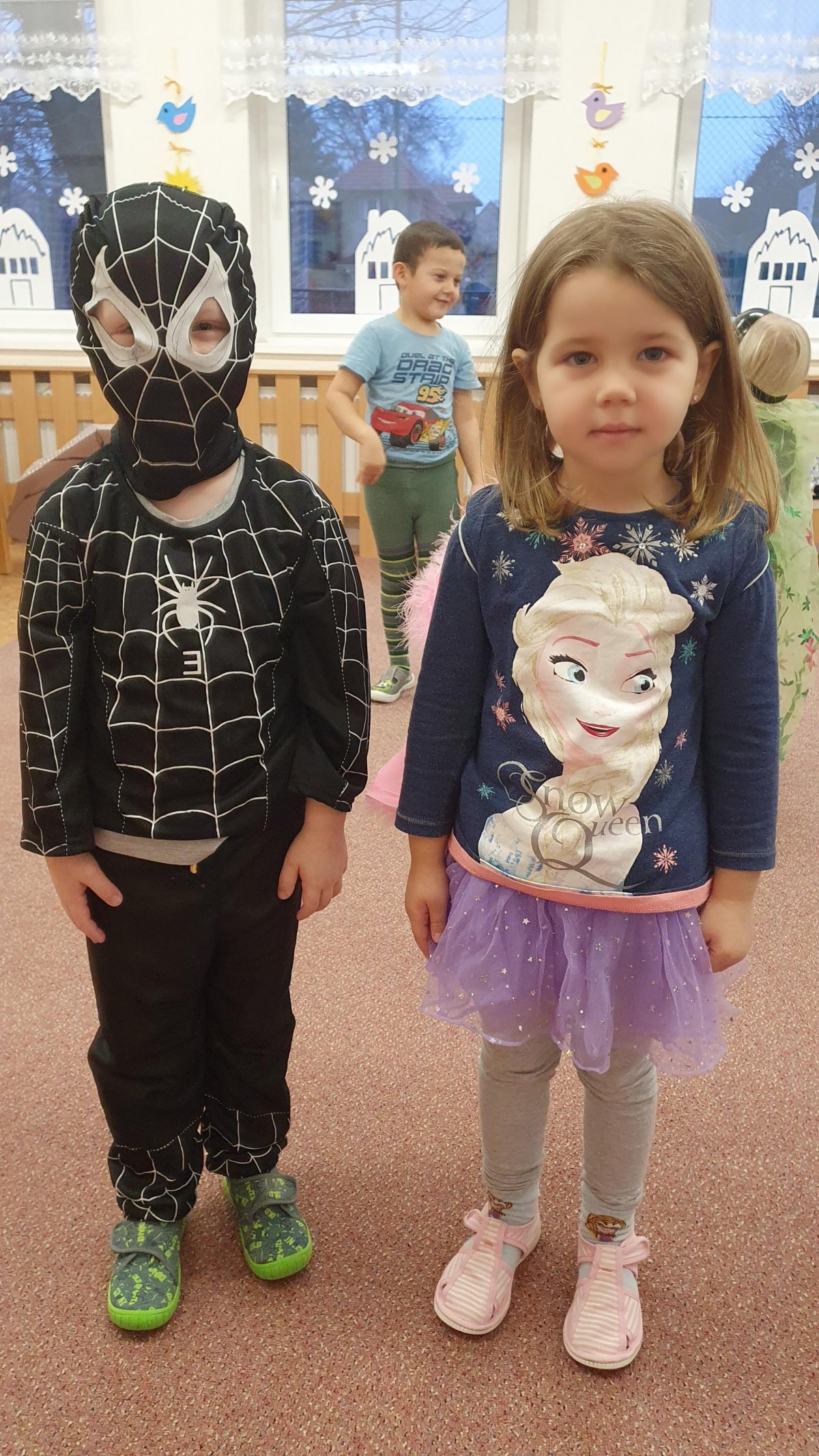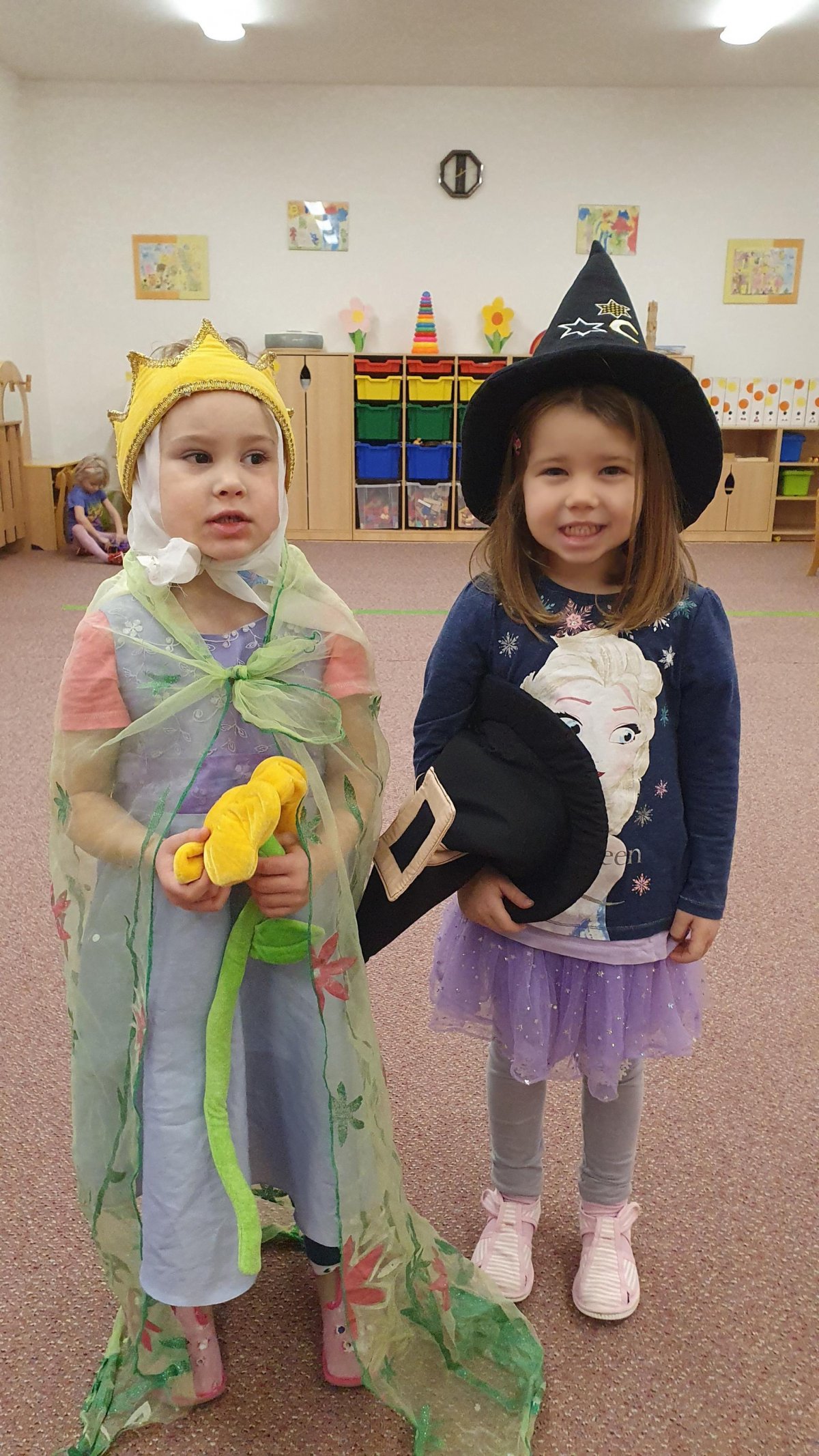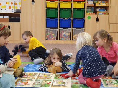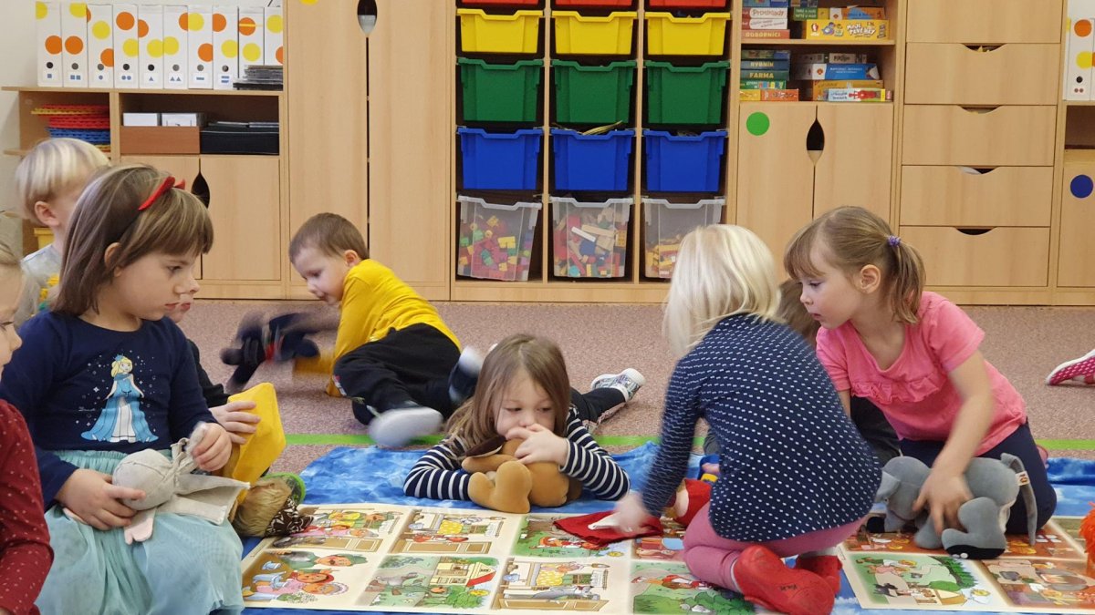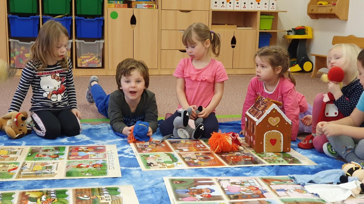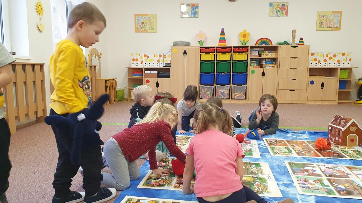 Celý týden se věnujeme pohádkám a pohádkovým bytostem. Prolezli jsme kouzelným tunelem do pohádkové říše. Zkoušíme poznat večerníčky podle znělky, hledáme pohádkové dvojice, přiřazujeme postavy k pohádkam, pohádkové obrázky řadíme podle dějové posloupnosti, zpíváme písničky z pohádek, opravujeme kašpárka, který plete pohádky, sami pohádky i hrajeme. Moc se nám to líbí a užívame si to.