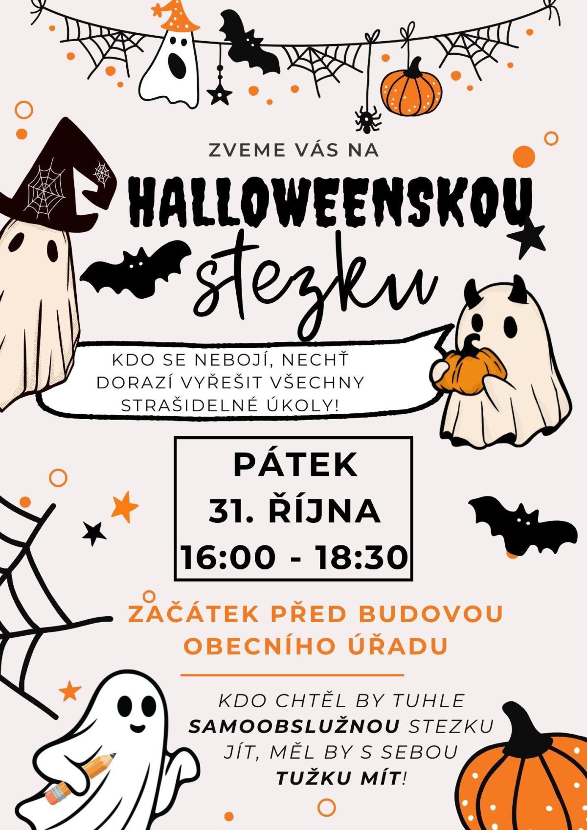 Zveme vás na halloweenskou stezku, kterou pořádá OÚ Tmaň. V pátek 31. 10. od 16:00 do 18:30, začátek před budovou obecního úřadu.