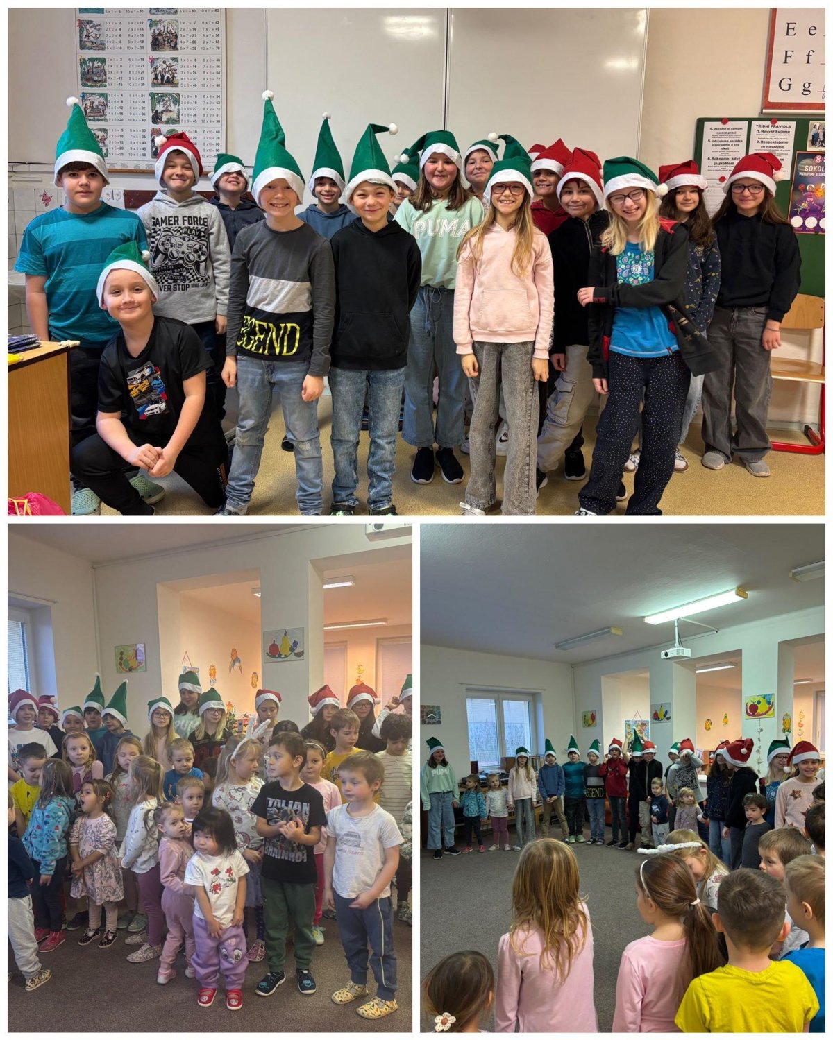 Dnes se IV. třída při hudební výchově připojila ke školce a všichni si společně zazpívali koledy a také zatancovali. Byl to velmi příjemně strávený čas a věříme, že se z této milé spolupráce stane krásná tradice.