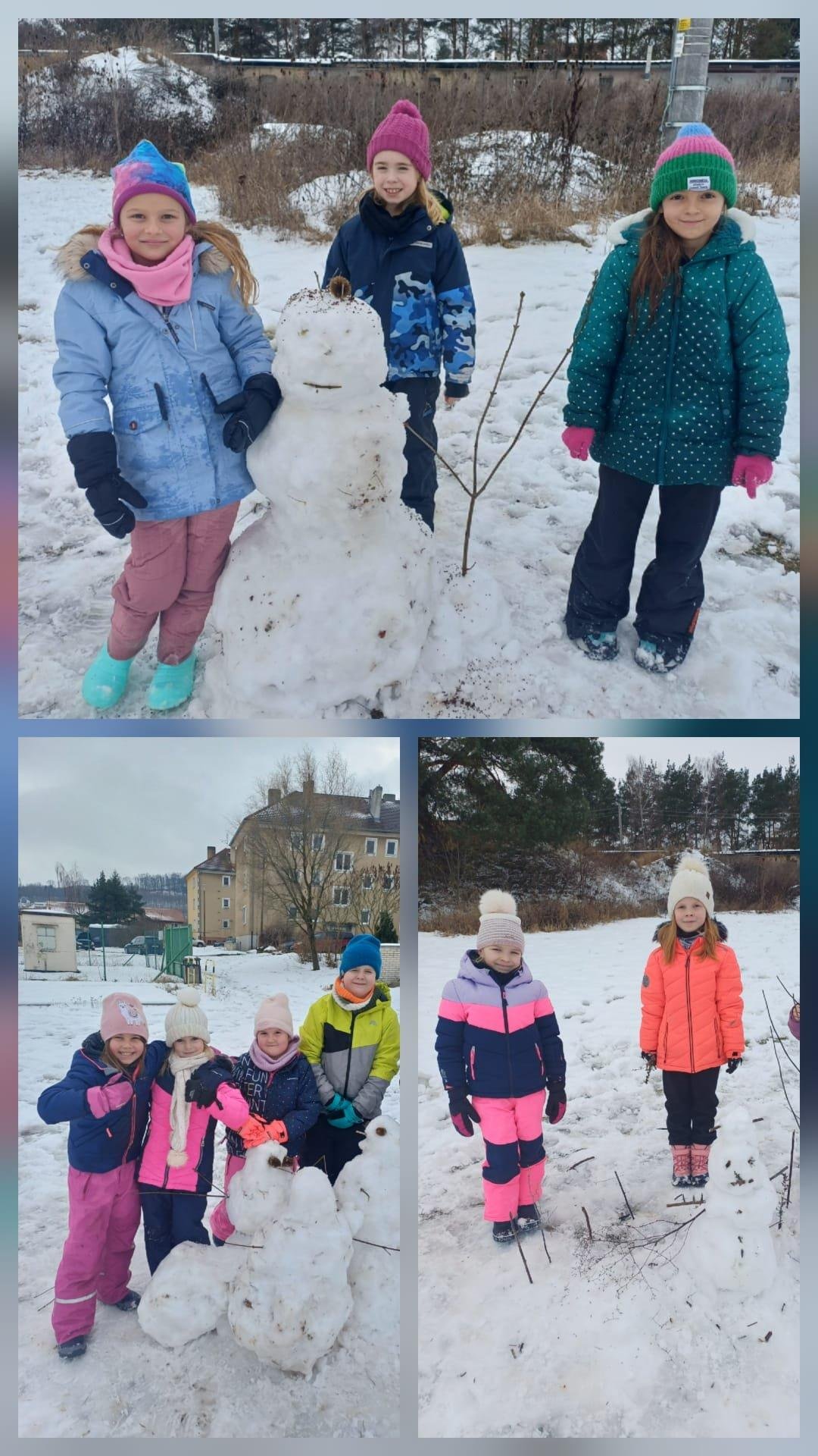 II. A využila nadílku sněhu a při hodině tělocviku se nejenom proběhli ve vyšlapaném bludišti, ale postavili si i pěkné sněhuláčky.