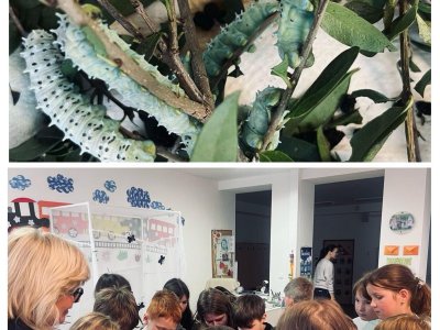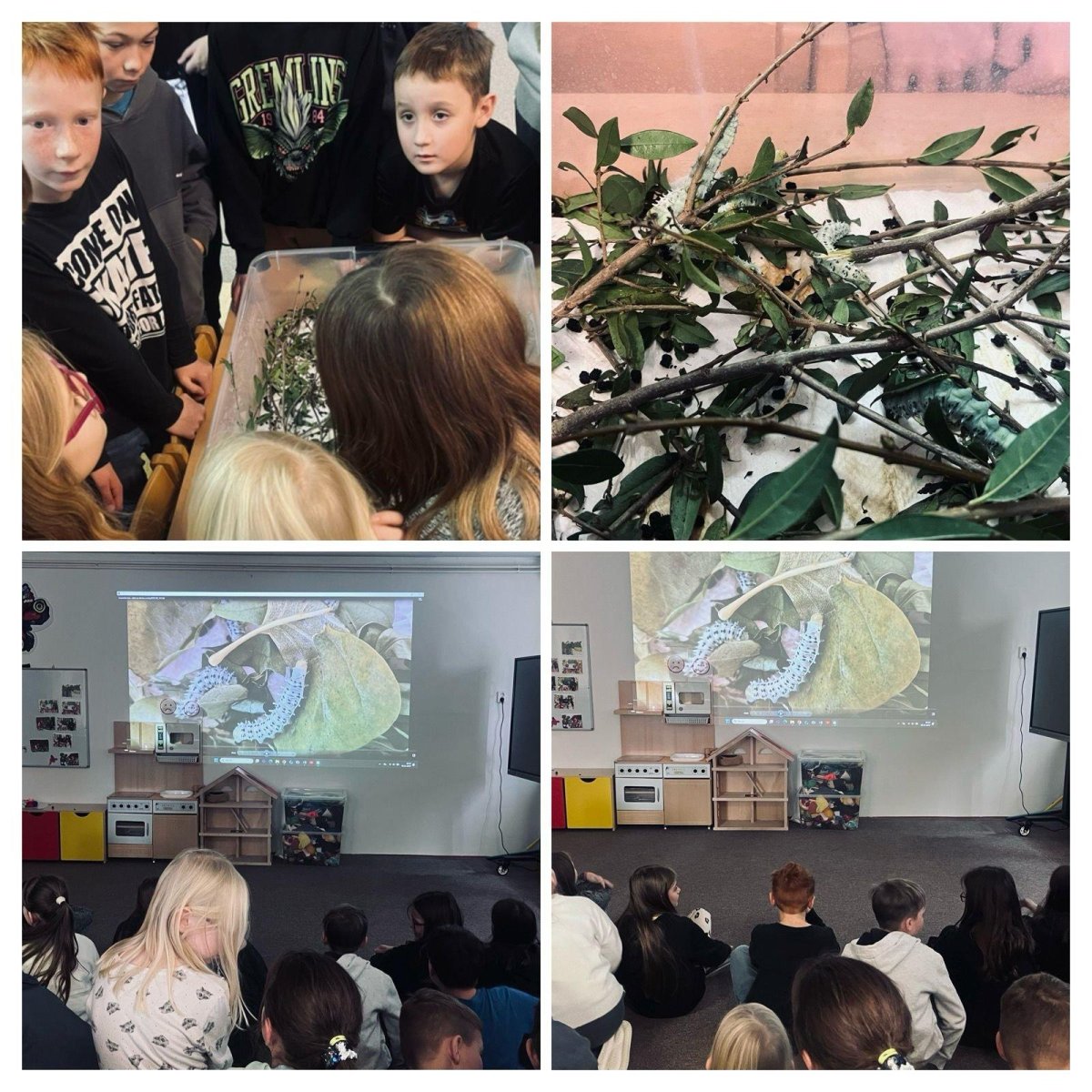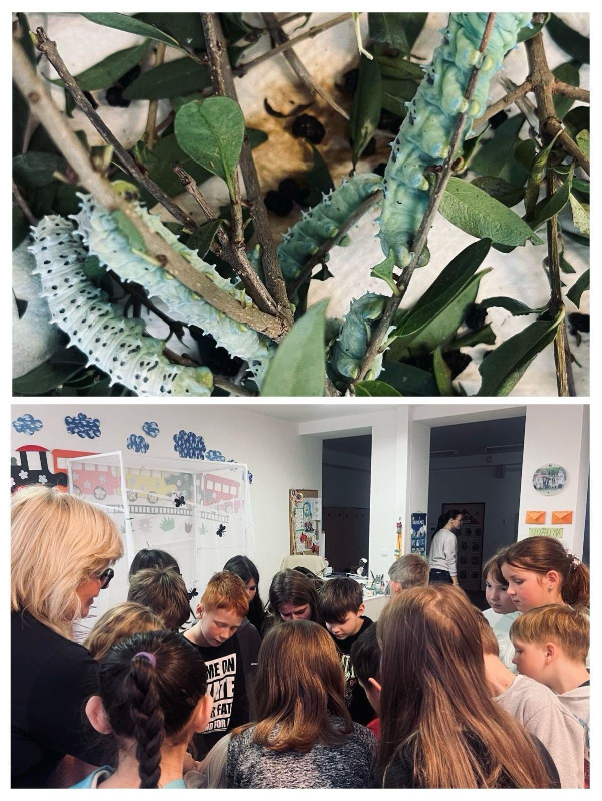 Žáci z celé školy se vydali na návštěvu do školky a čekal je tam opravdu jediněčný zážitek. Předškoláci totiž chovají martináče pajasanového a tak můžeme sledovat počátek přeměny, zatím od vajíček k housenkám a nyní už i kukel. Doufejme, že naše škola bude mít brzy další létající obyvatele.